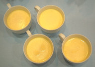 プリンの器に注ぐ(カラメルが熱いうちに注ぎいれる)。